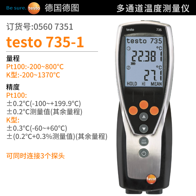 testo 735-1 多通道溫度測量儀適用于多種不同場合及應用。只要選擇適當的探...