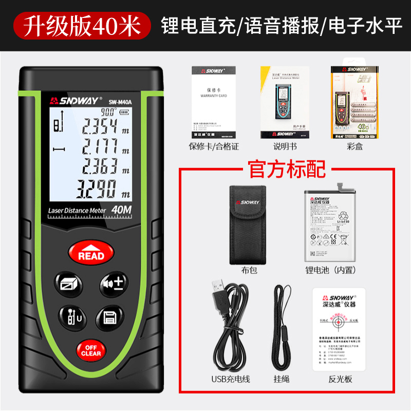 測試范圍:40米,測試精度:1.5mm,鋰電直充,語音播報...