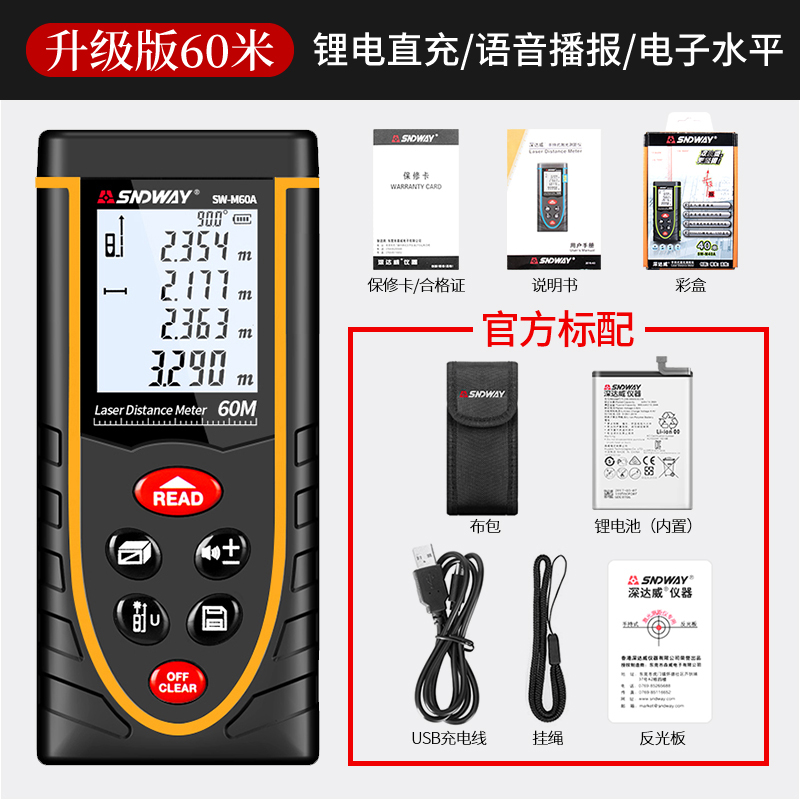 測試范圍:60米,測試精度:1.5mm,鋰電直充,語音播報...