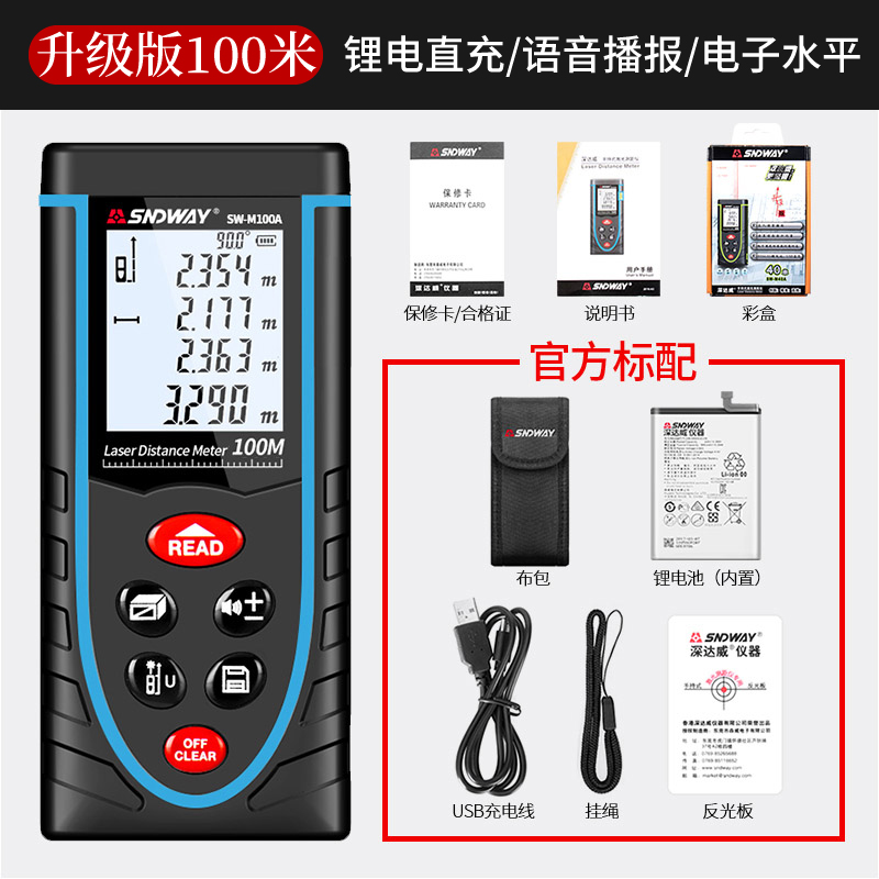 測試范圍:100米,測試精度:1.5mm,鋰電直充,語音播報...
