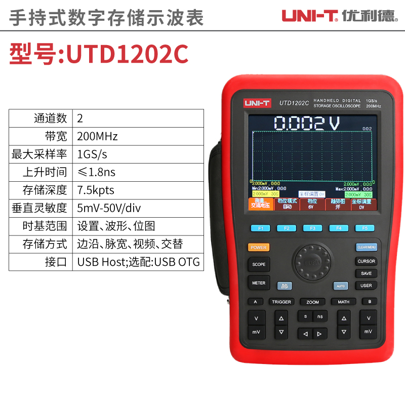 帶寬:200MHz,最大采樣率1GS/S,存儲深度:7.5kpts,垂直靈敏度:5mV...
