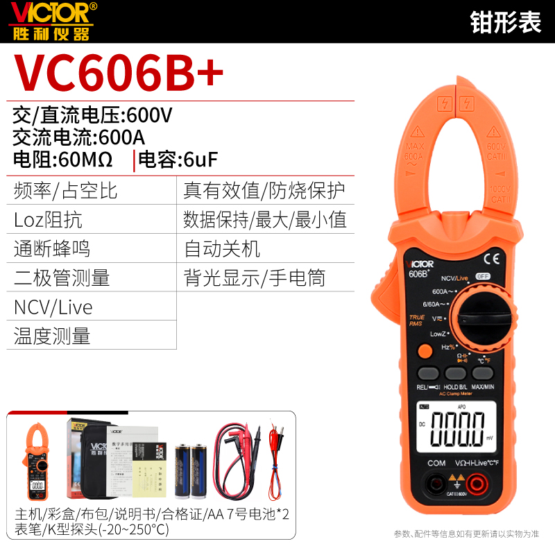 VICTOR 6016B+是6000宇顯示自動(dòng)量程真有效值手持式鉗型數(shù)字儀表,整機(jī)...