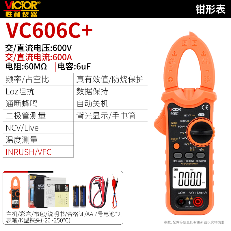 VICTOR 6016C+是6000宇顯示自動(dòng)量程真有效值手持式鉗型數(shù)字儀表,整機(jī)...