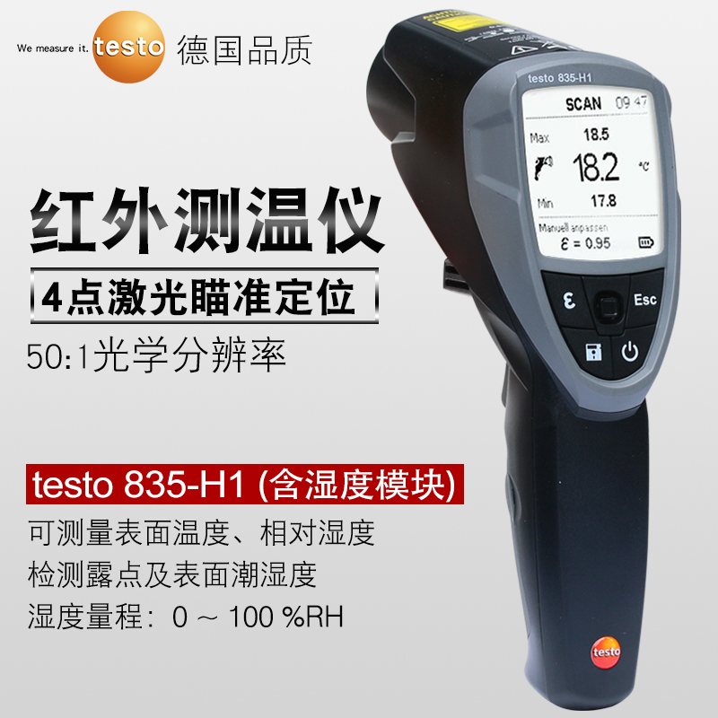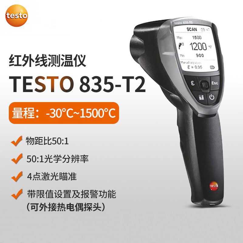 testo 830-T1紅外測溫儀,單點激光瞄準,光學分辨率10:1,廣泛適用于各行各...