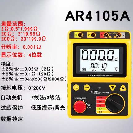 接地電阻(Ω):0~2000Ω,交流接地電壓:0~200V