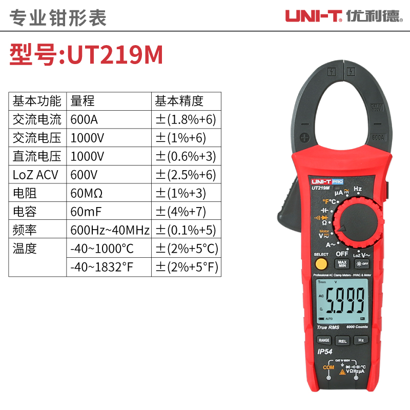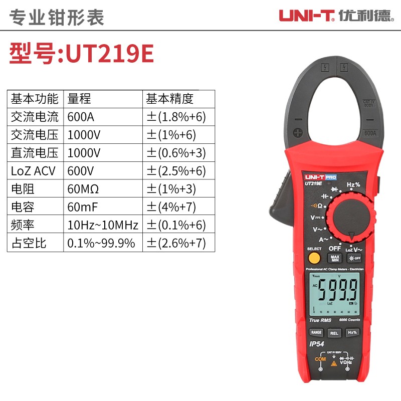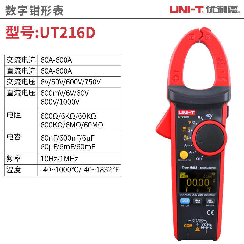 交流電流:600A;交直電壓:1000V;電阻:60MΩ;電容:60mF;頻率:60...