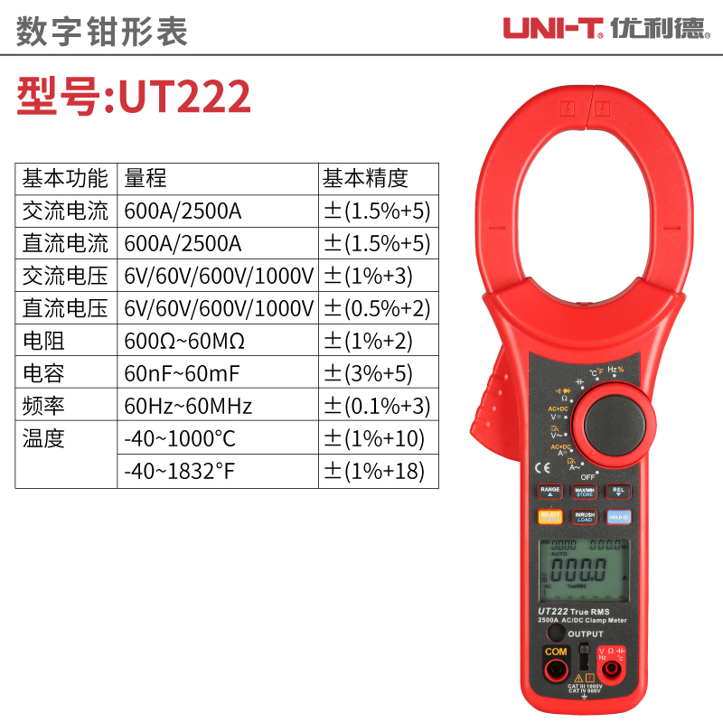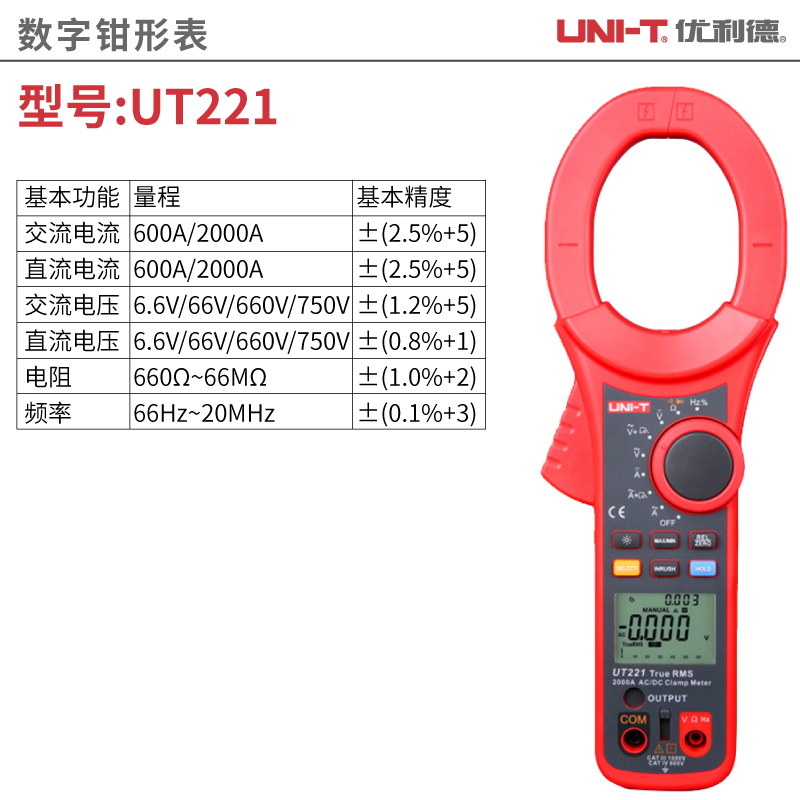 交直電流:600A;交直電壓:1000V;電阻:60MΩ;頻率:600Hz~40MHz;...