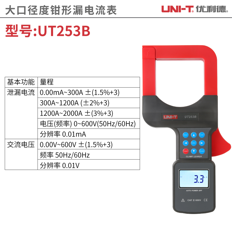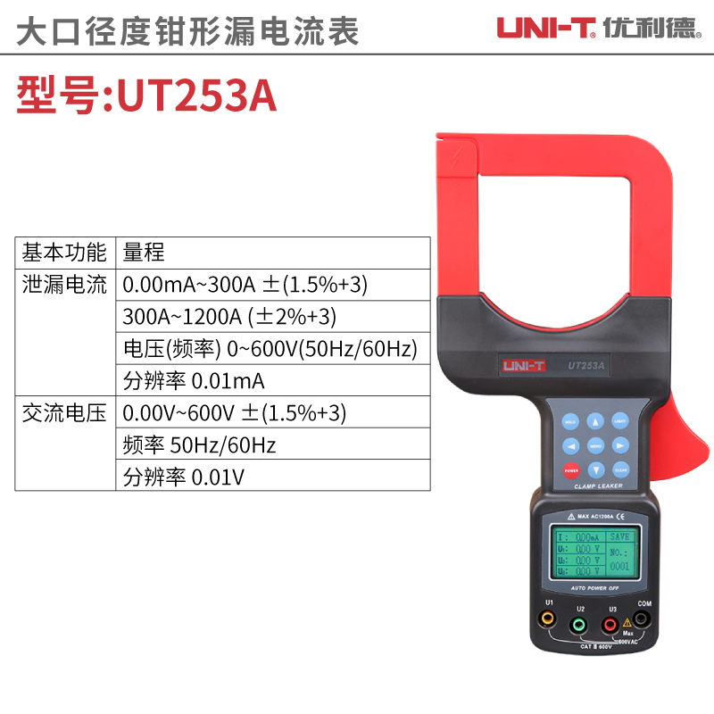 量程:0.001A~600A;電壓(頻率)0V~600V(50Hz/60Hz);分辨率1mA...