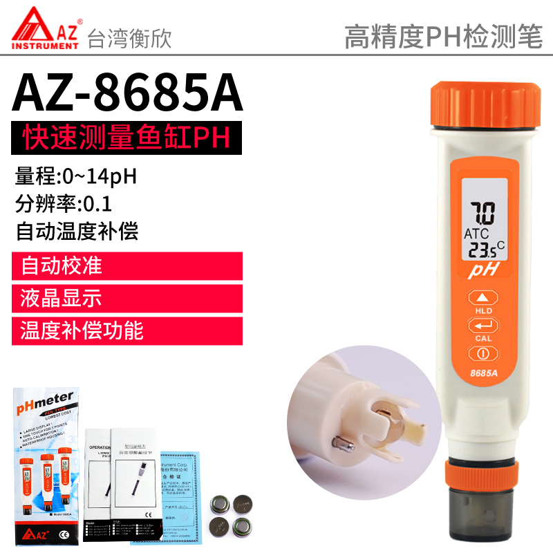 PH值測量范圍:0-14,測溫范圍:0-60℃,PH分辨率:0.1