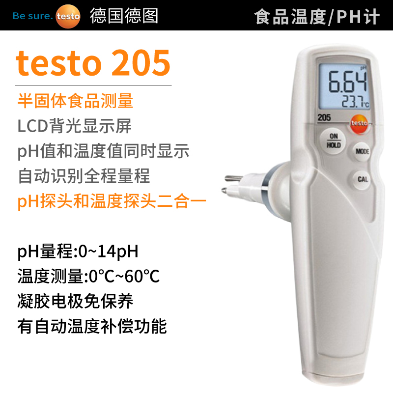 食品生產領域,酸堿度pH值和溫度值十分重要。使用testo 205您可同時測量半...