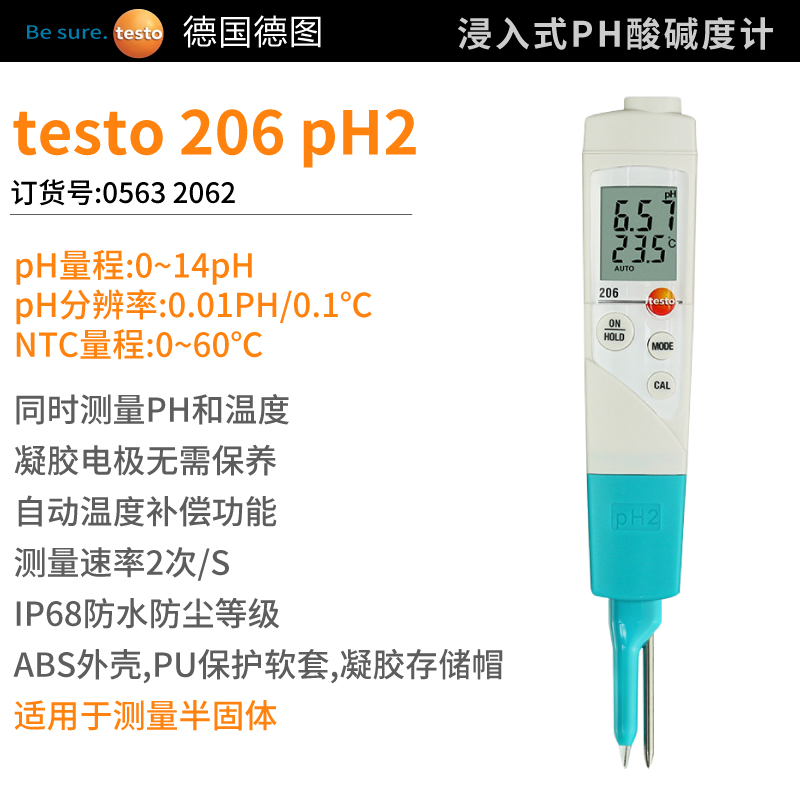 testo 206-pH3 pH酸堿度測量儀優勢在于可外接各類pH探頭,即可按要求實現...