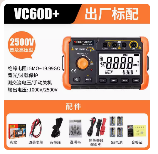 VICTOR 60B+是-臺智能微型絕緣測試儀,可以完成絕緣電阻、電壓等參數...