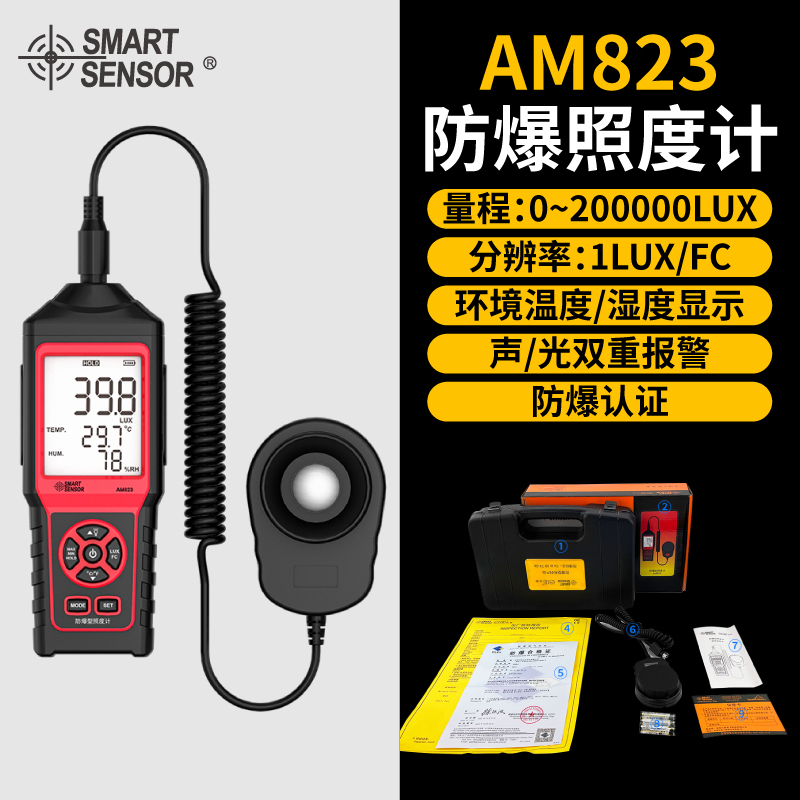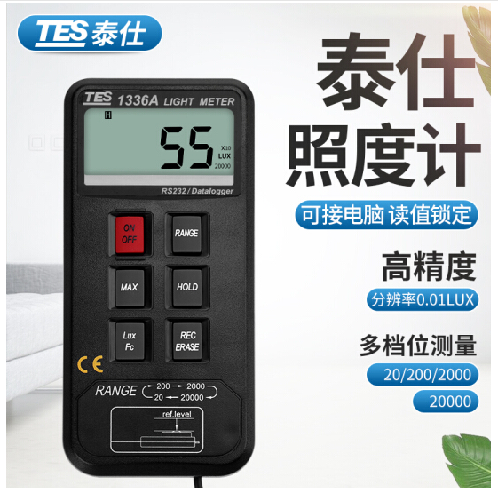 3 1/2數顯,測量范圍:0.1~200000lux,分辨率:0.1lux