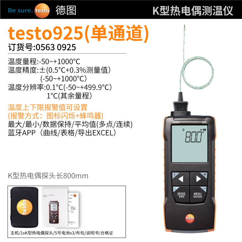 使用數(shù)字溫度測量儀testo 925(包含1個(gè)K型熱電偶),進(jìn)行簡單、快速和精確...