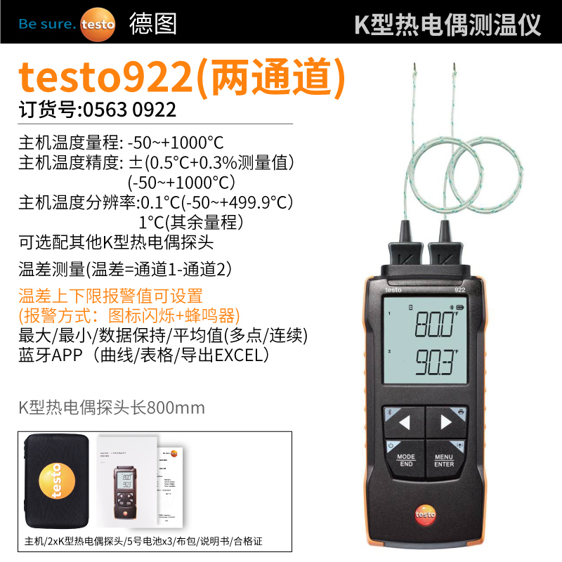 使用雙通道溫度測量儀testo 922(隨機(jī)標(biāo)含2個(gè)K型熱電偶),可以簡單快速和...