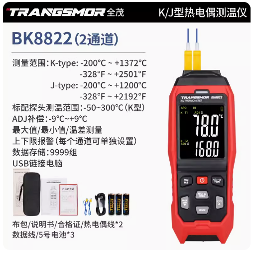熱電偶測溫儀BK8822檢測器k型工業(yè)接觸式多通道電子溫度計(jì)帶探頭...