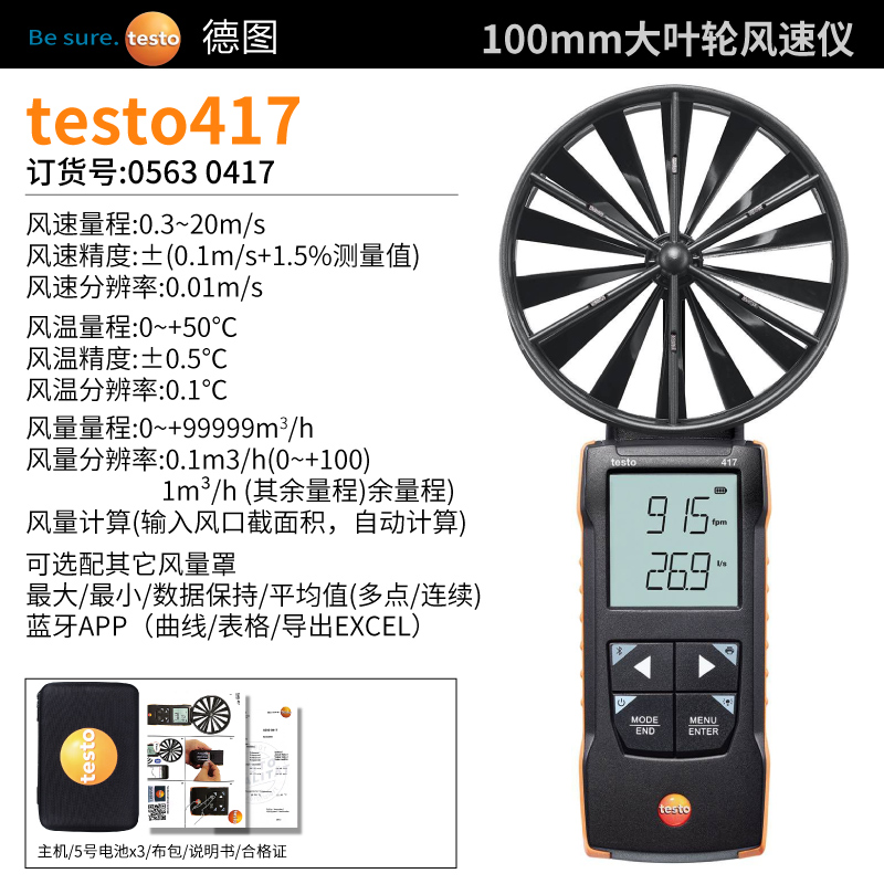 testo 417 葉輪風速計,快速精確地測量空調和通風系統進風口和出風口風速風...