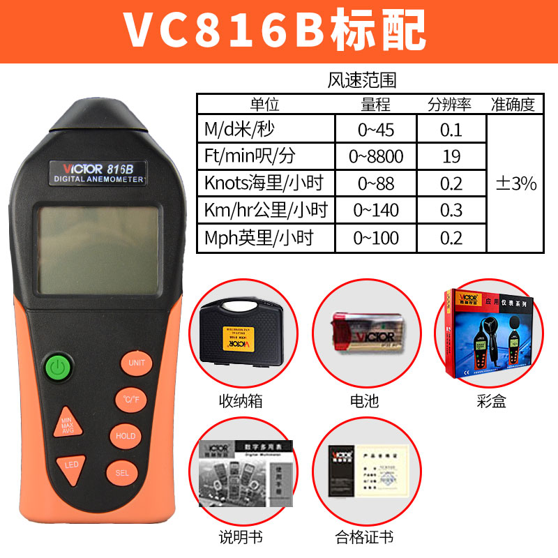 VICTOR816B風速計一款性能穩定,可靠,外觀新穎可同時進行風速風溫測...