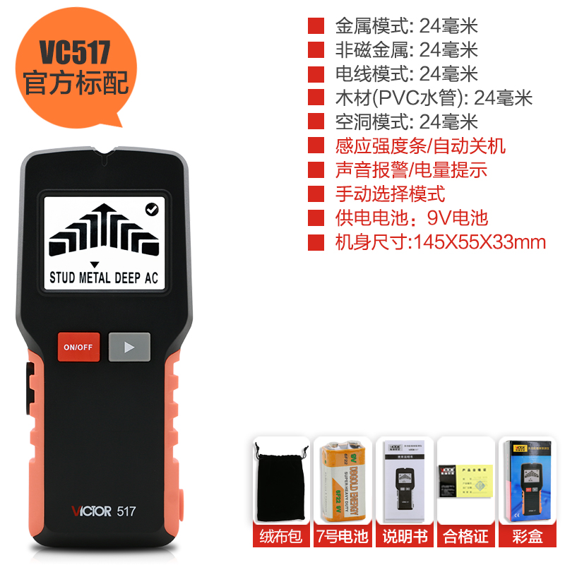 VC517是一款經濟型的多功能墻體探測儀,儀器采用高清大屏LCD液晶五級強...