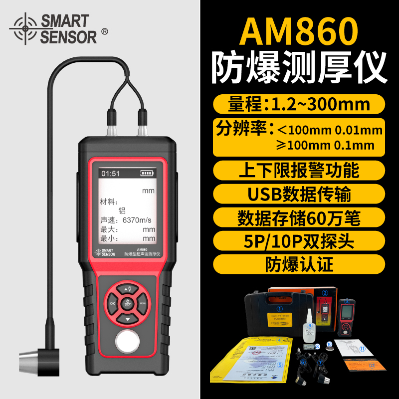 測量范圍 1.2-225mm(鋼),測量誤差 ±(1%±0.1)mm,測量誤差 ±(1%±0.1)...