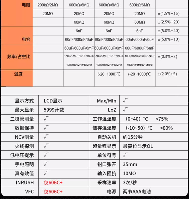 鉗形表,交流,交直流電流600A