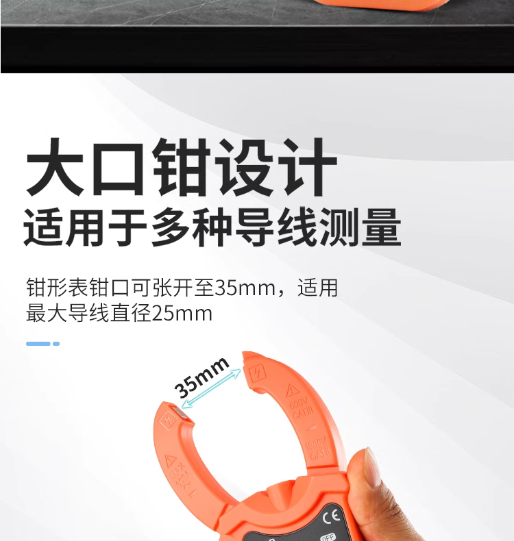 鉗頭可張開35mm,適用多種導(dǎo)線