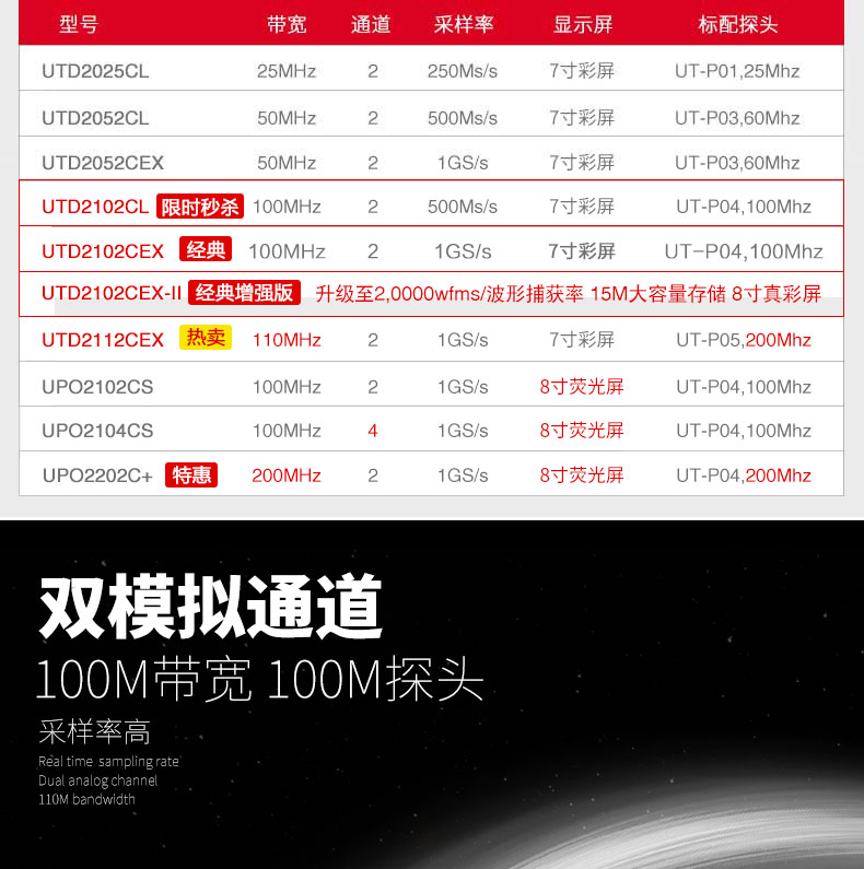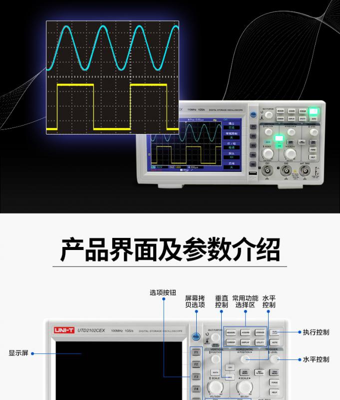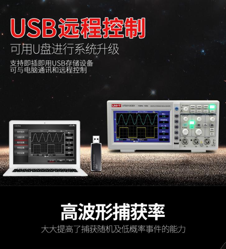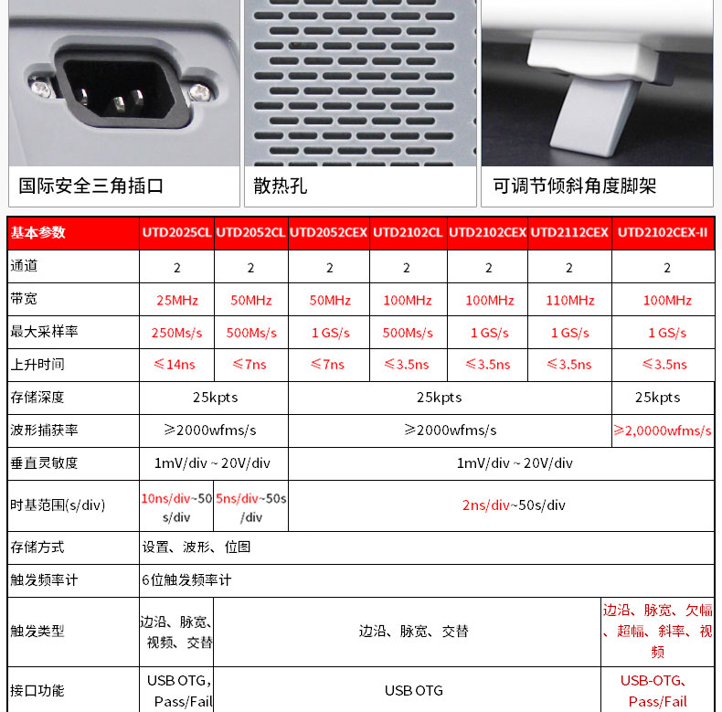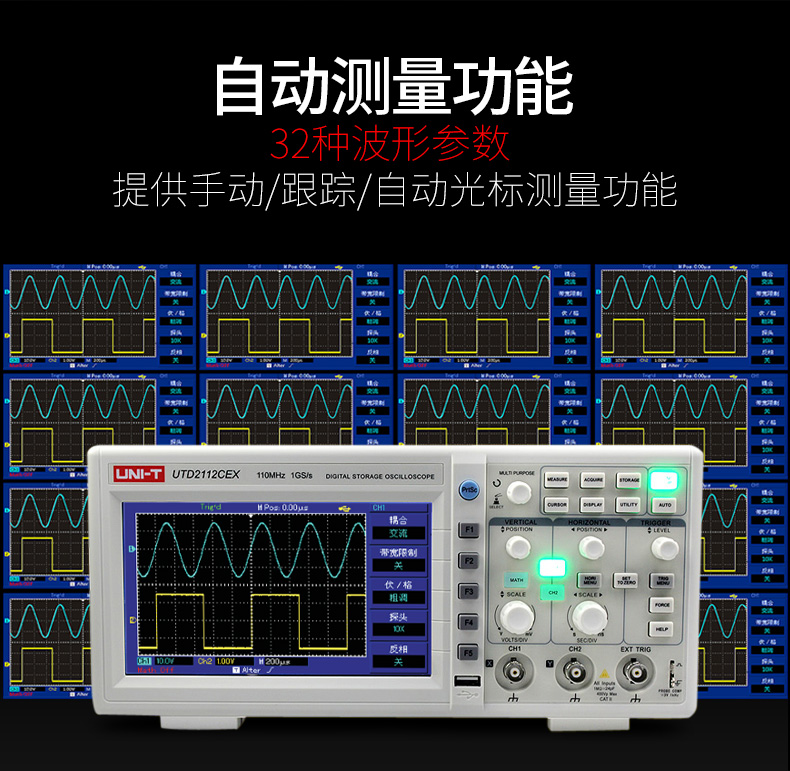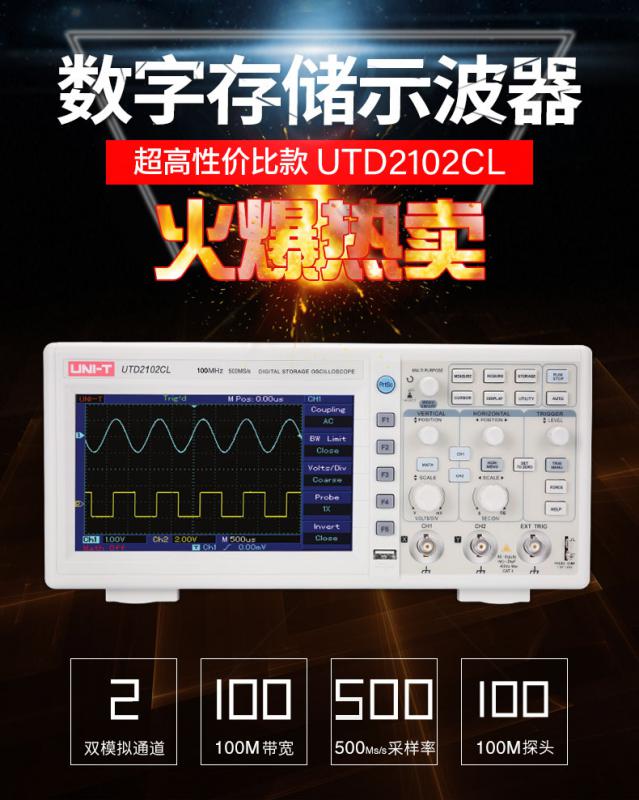 UTD2052CEX是一款雙通道,50MHz帶寬,最大采樣率1GS/s的經濟型數字存儲示波器,