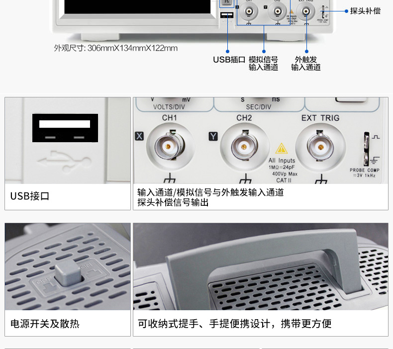 雙通道,50MHz帶寬,最大采樣率1GS/s