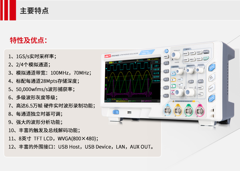 1、50MHz/70MHz/100MHz帶寬,1GSa/s實時采樣率