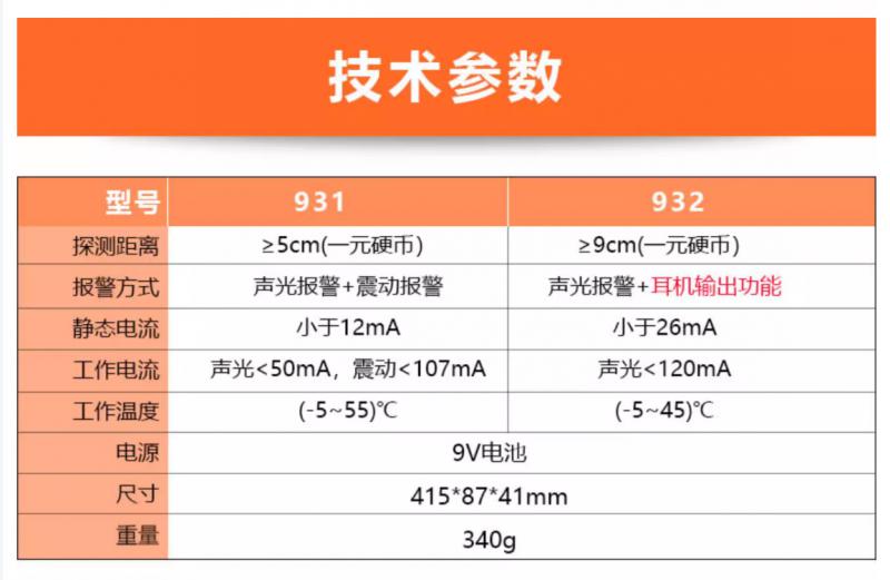 報警方式:聲光同步報警(無振動功能),帶耳機輸出功能,報警音量可大小改變;