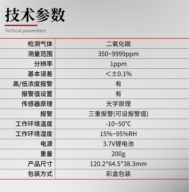 | 檢測氣體 | 二氧化碳(CO2) |
