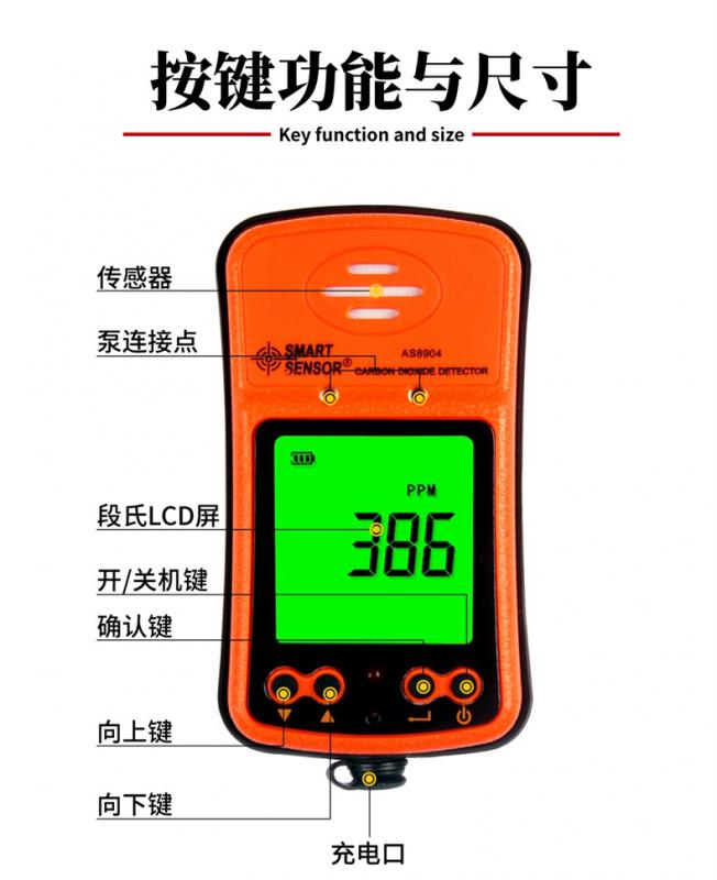 本儀器是一款便攜式二氧化碳(CO2)檢測儀,檢測到二氧化碳時(shí),二氧化碳濃度讀數(shù)會(huì)顯示在液晶顯示屏上。儀器提供用戶可自行設(shè)置的低濃度/高濃度報(bào)警功能。當(dāng)檢測結(jié)果超出預(yù)先設(shè)置的報(bào)警設(shè)定值,儀器便以聲、光及振動(dòng)報(bào)警提醒用戶