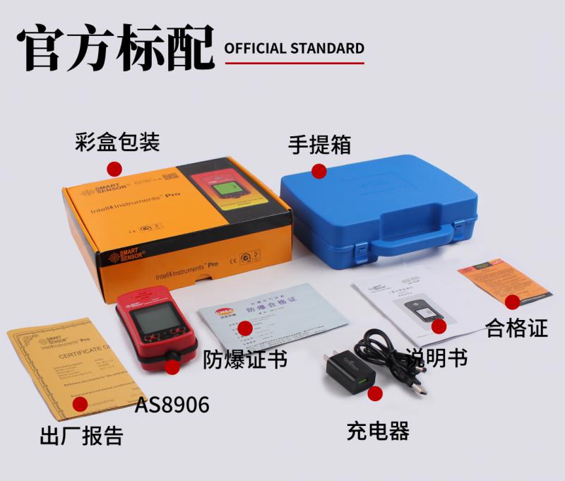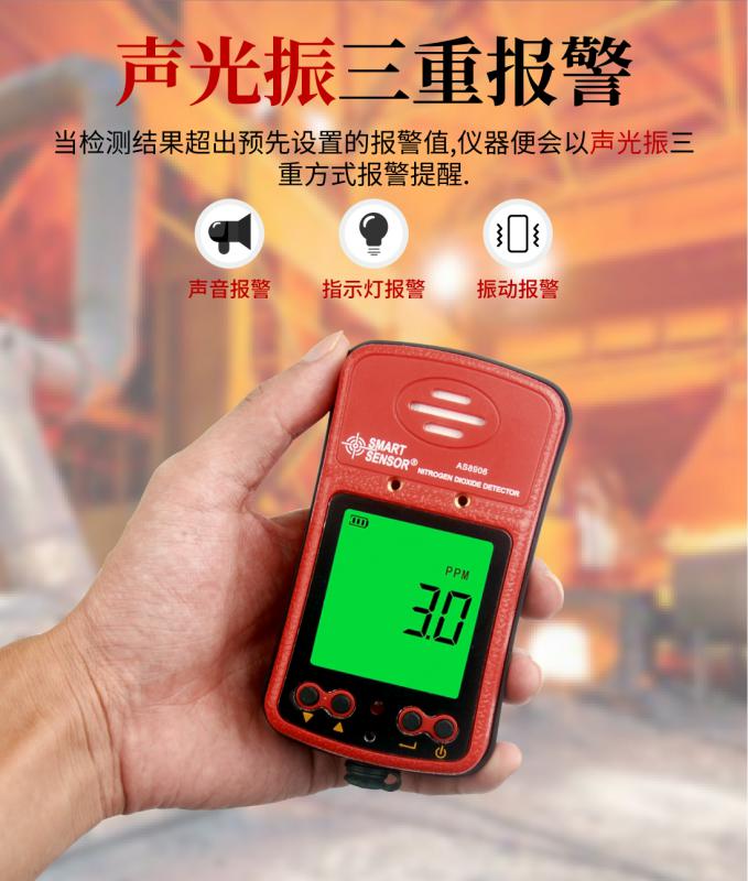 | 報警方式 | 聲、光、振三重報警,可以設置報警值,報警聲可達80分貝 |