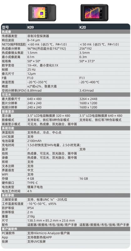 海康微影熱成像儀K20口袋紅外照相測溫儀產(chǎn)品價格: