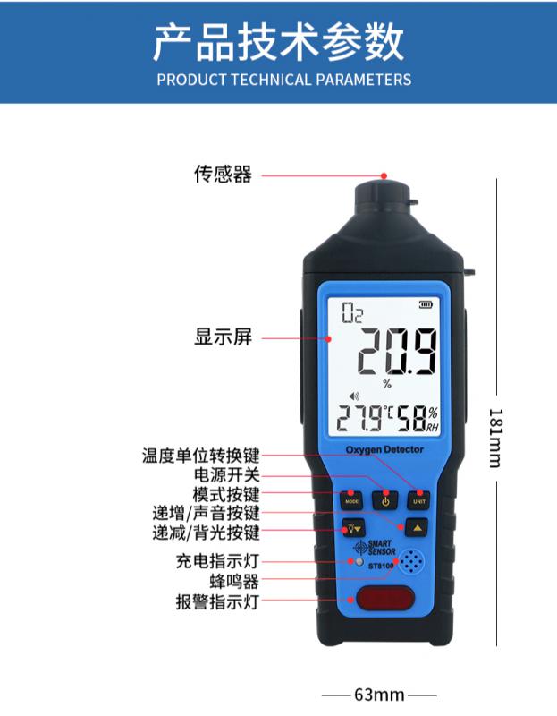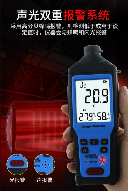 希瑪ST8100氧氣檢測儀手持式氧氣O2濃度含量氣體報警器測氧儀