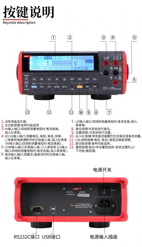 UT805A 是200000計數(shù)的自動量程真有效值數(shù)字臺式機萬用表。