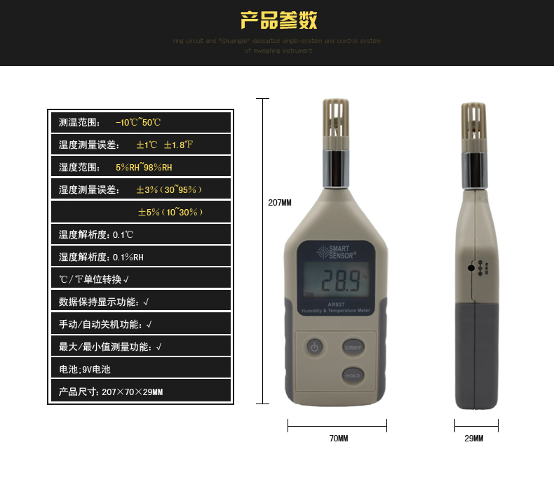 溫度測(cè)溫范圍 -10℃~50℃ ,濕度范圍 10%RH~99%RH
