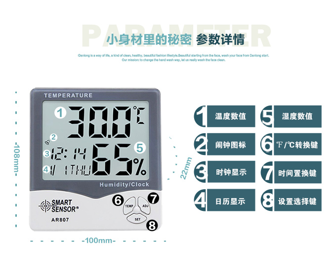 溫濕度計是用于測量溫度及水分在大氣中的含量??焖佟⒎奖?、精確地測量空氣中的濕度和溫度讀數。