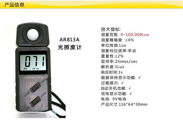測量范圍 1~100.000lux