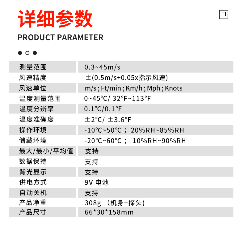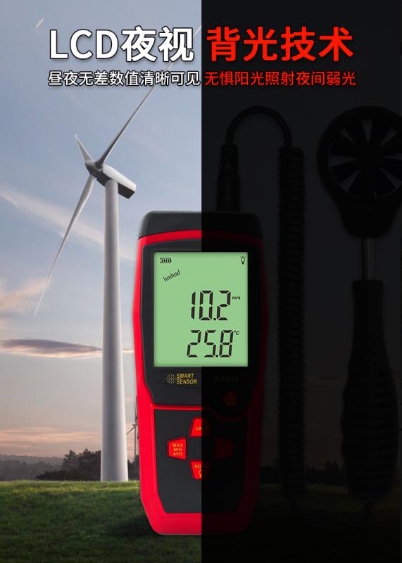 分體式風速儀,0.3~45m/s,風溫0℃~45℃,最大風速/最小風速/平均風速測量,9V電源