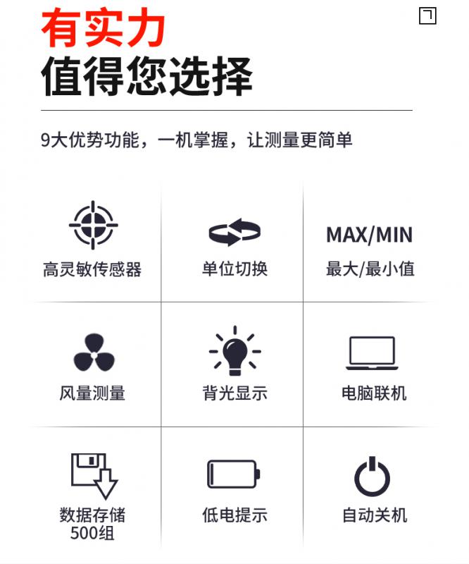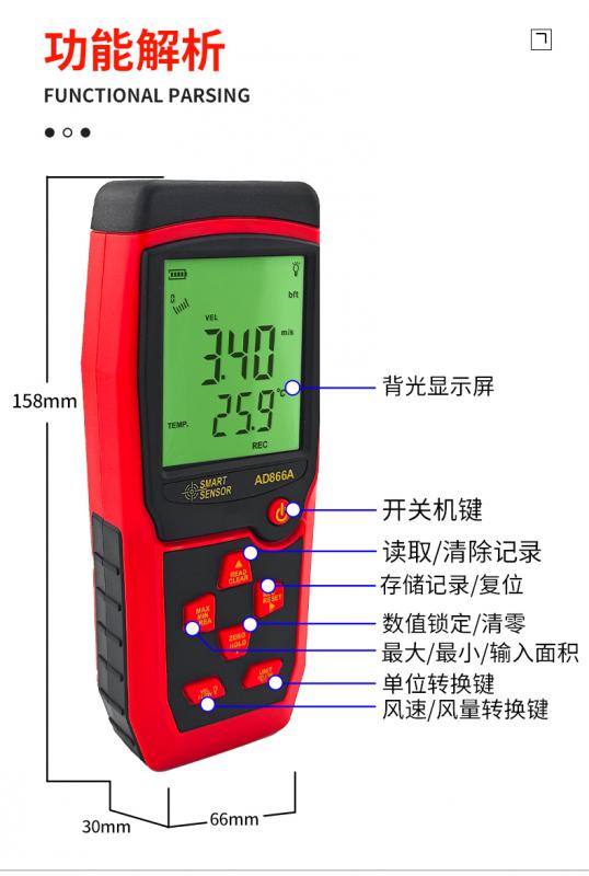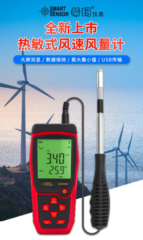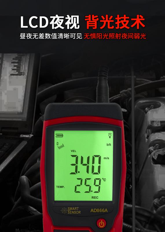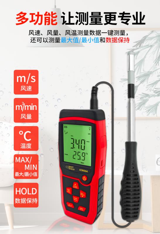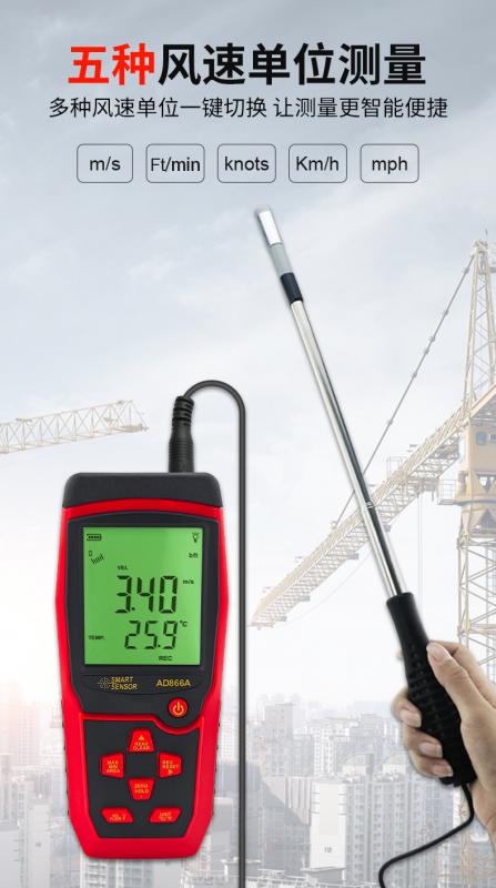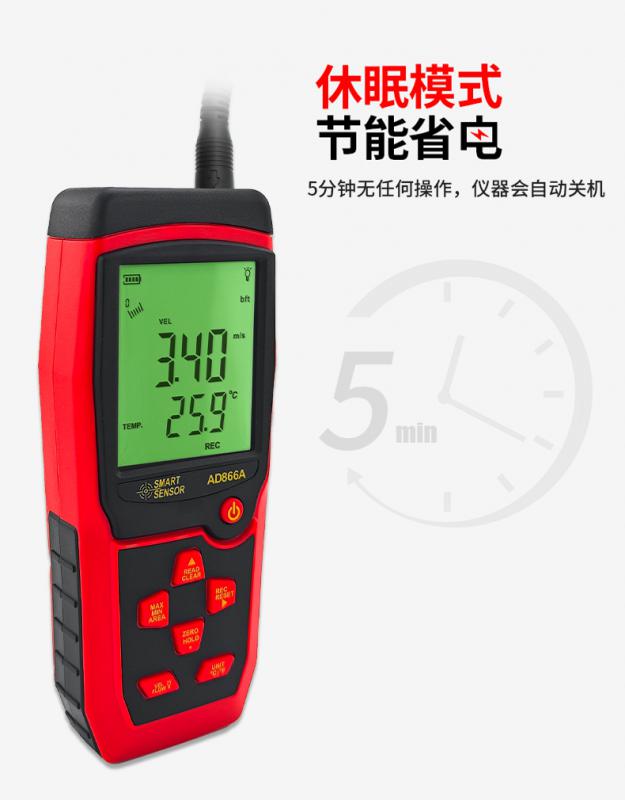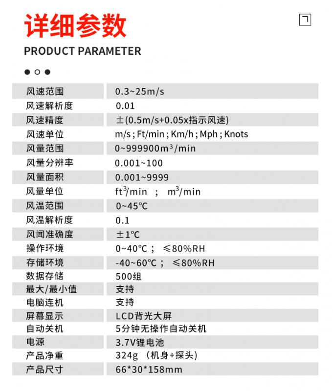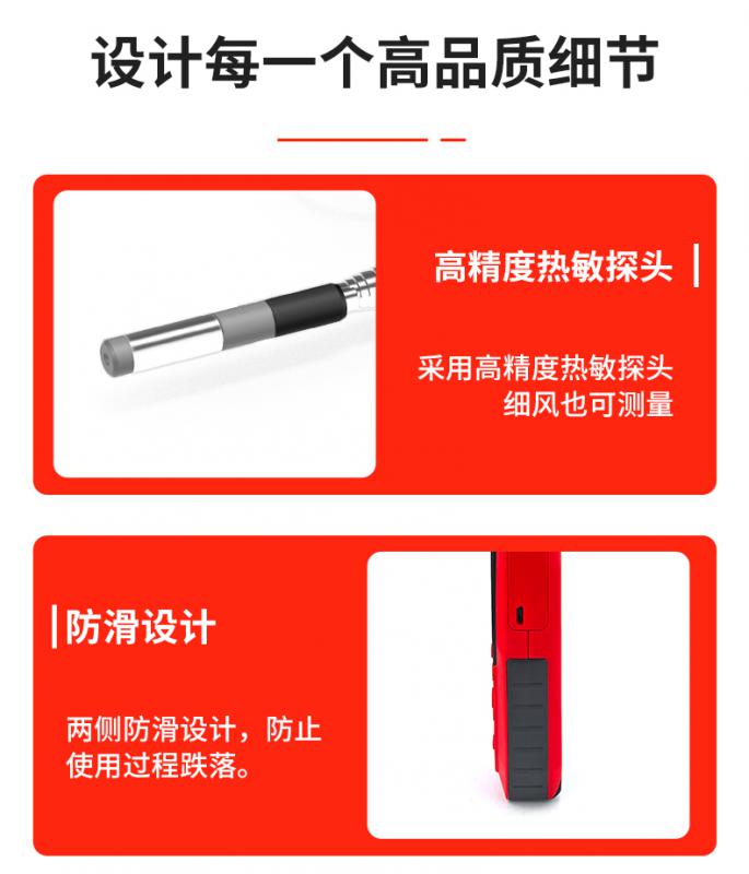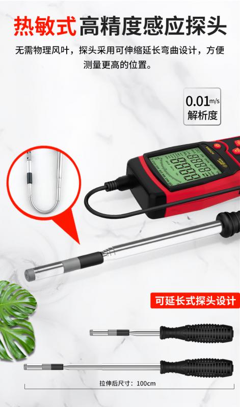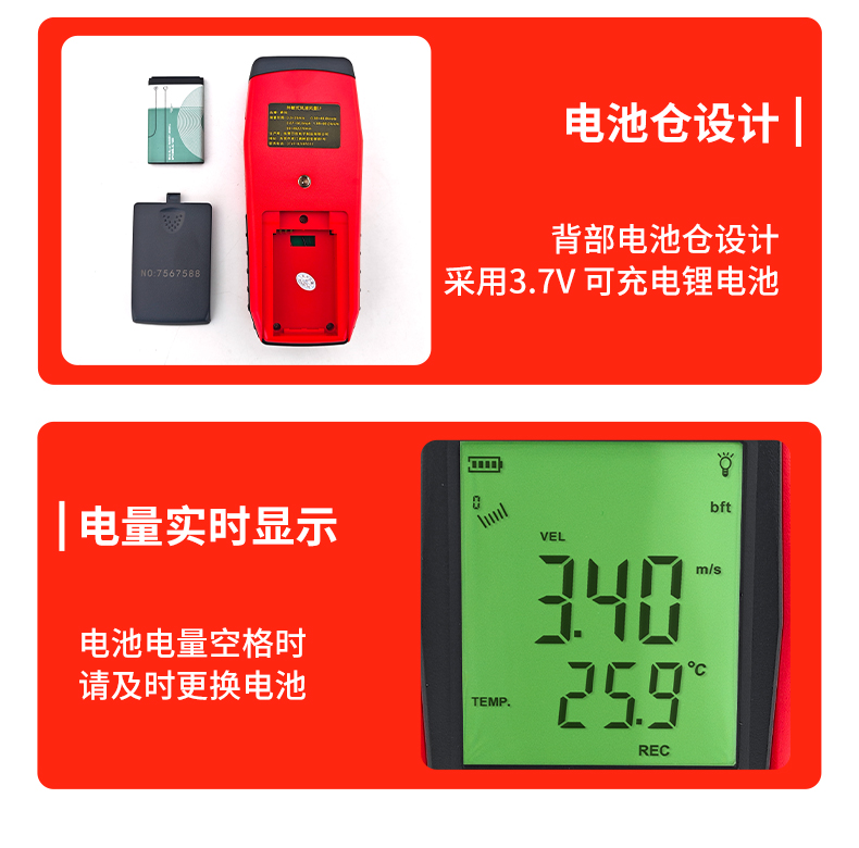 熱敏式風速儀,0.3~25m/s,風溫0℃~45℃,最大風速/最小風速/平均風速測量,數據存儲500組,3.7V鋰電池