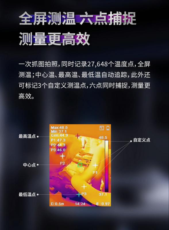 支持中心點、最高溫、最低溫、3個自定義點測溫 |