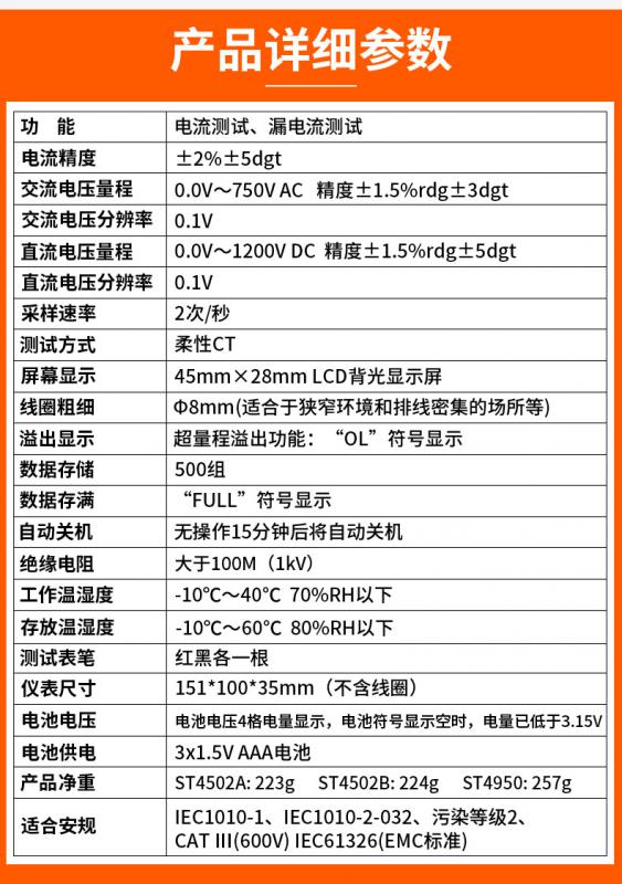 希瑪ST4502B柔性電流鉗表產品價格: