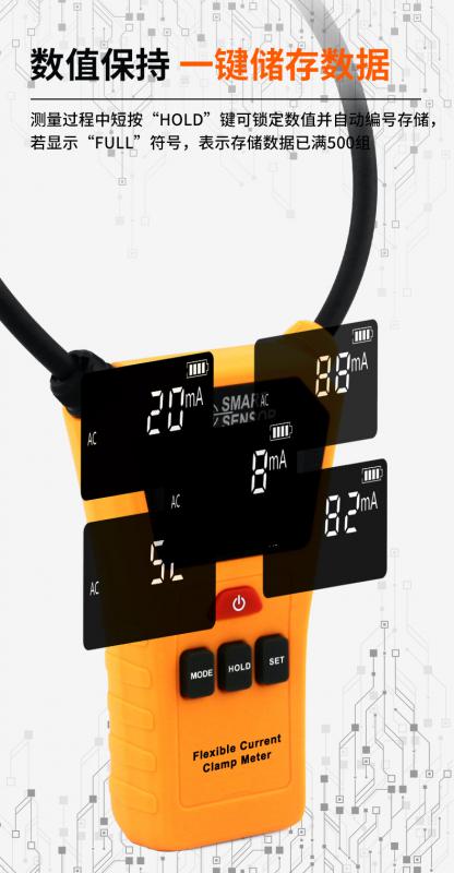 柔性電流鉗表具有報警值設定及報警指示功能,具有歷史數據讀取、保存等功能。儀表還具數據保持、 數據存儲等功能,使用方便,是電工安全檢測的必備工具。