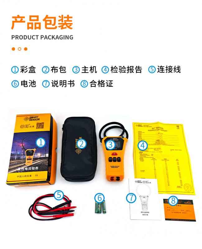 柔性電流鉗表為現場測試交流大電流、漏電流而精心設計制造的。具有精度高、線性度好、抗干擾能 力的特點可替代傳統普通鉗表和大口徑鉗表測量大電流漏電流,廣泛適用于電力、通信、氣象、鐵路、油 田、建筑、計量、科研教學單位、工礦企業等領域。特別適合排線密集的場所、變壓器靠墻接地鐵芯電流 測試、粗導線電纜測試、繼電保護、可控硅整流、變頻調速、半導體開關、功率電子轉換設備、電弧焊接 等信號嚴重畸變的工業環境的電流測試。 柔性電流鉗表具有報警值設定及報警指示功能,具有歷史數據讀取、保存等功能。儀表還具數據保持、 數據存儲等功能,使用方便,是電工安全檢測的必備工具。
