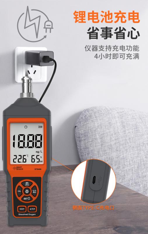 ST8406溶氧儀(Dissolved Oxygen Meter)通過(guò)施加極化電壓到貴金屬電極,使水中的氧 氣在陰極發(fā)生還原反應(yīng)。主要是用于測(cè)量水體中溶解氧(DO)濃度的專業(yè)儀器,廣泛應(yīng)用于環(huán)保監(jiān)測(cè)、 水產(chǎn)養(yǎng)殖、污水處理、實(shí)驗(yàn)室研究等領(lǐng)域。其通過(guò)電化學(xué)或光學(xué)傳感技術(shù),快速、精準(zhǔn)地檢測(cè)水中氧氣 含量,幫助用戶評(píng)估水質(zhì)健康狀況、優(yōu)化工藝流程或保障水生生物生存環(huán)境。