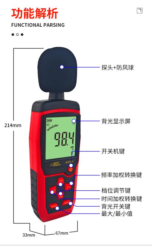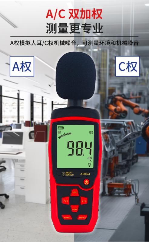 AD824【量程30~130dBA/精度±1.5dB/AC計權】