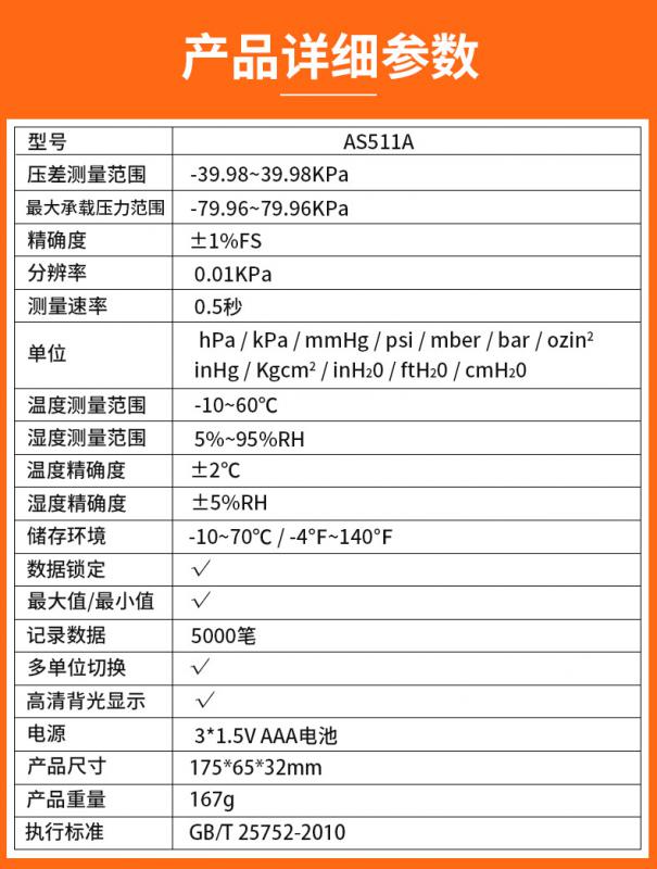 數字式壓差計AS511A(-39.98~39.98Kpa)產品價格: