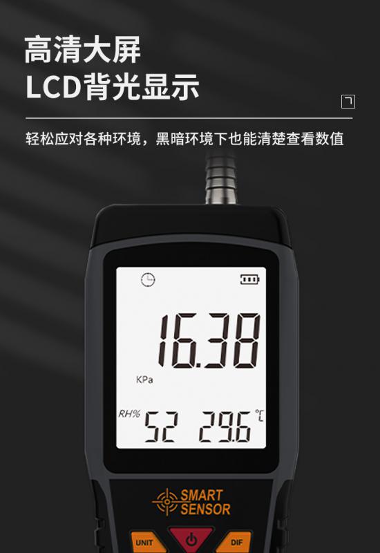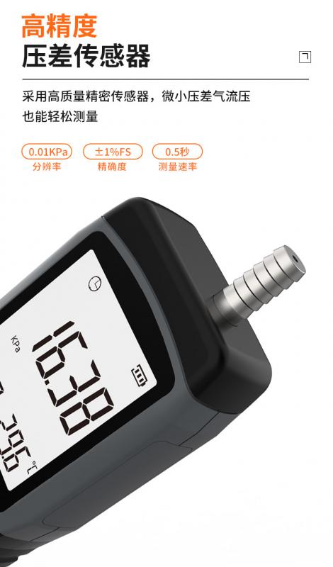 數字式壓差計是一款便攜式的壓差測量儀器,操作簡單,只需連接一個測壓點,適合快速檢測, 單傳感器校準、故障率低,具有數字化顯示、高精度、易操作,便于攜帶測量,多場景適配等特點。廣 泛應用于工業制造與潔凈環境,通風管道檢測,能源化工與環保領域等。