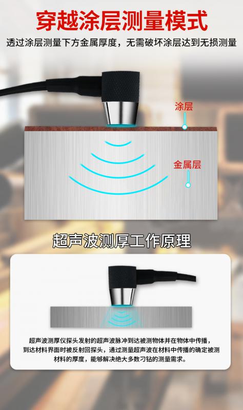 涂層型超聲波測厚儀是一種基于超聲波脈沖反射原理的無損 檢測設備,能夠在不移除表面涂層的情況下直接測量出基材的厚度